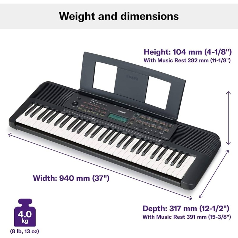 - In The Box: Yamaha PSRE273 Keyboard + 8mm Padded Bag for protect your instrument, Double X Keyboard Stand, Music Rest, Power Adaptor