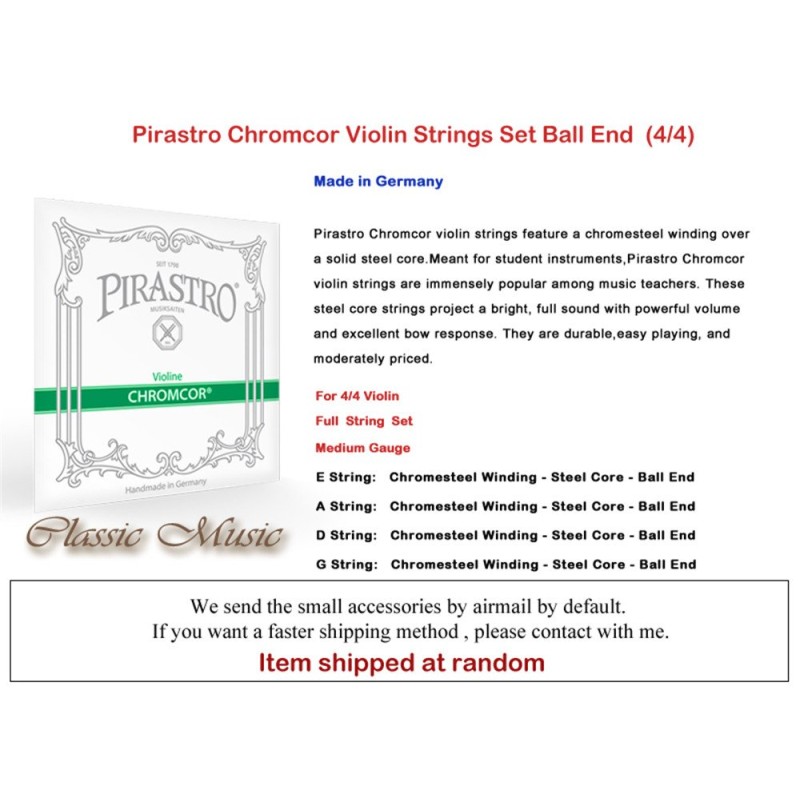 - Features: 1 x full set Pirastro Chromcor 4/4 Violin String Set. Medium Gauge with stainless steel Ball End E string