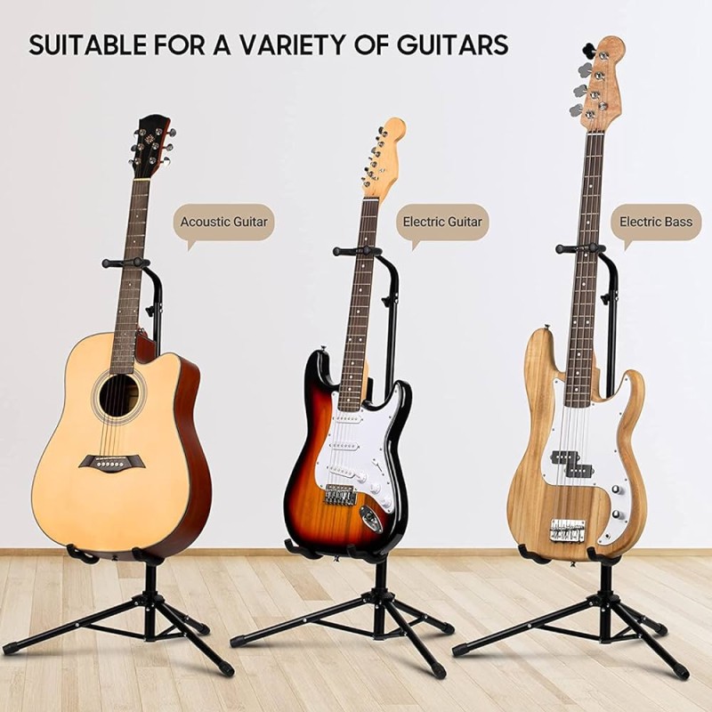 This versatile stand is designed to securely hold electric, classical guitars, and bass, making it a must-have for musicians.