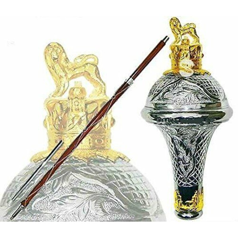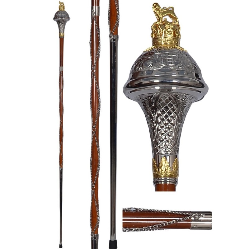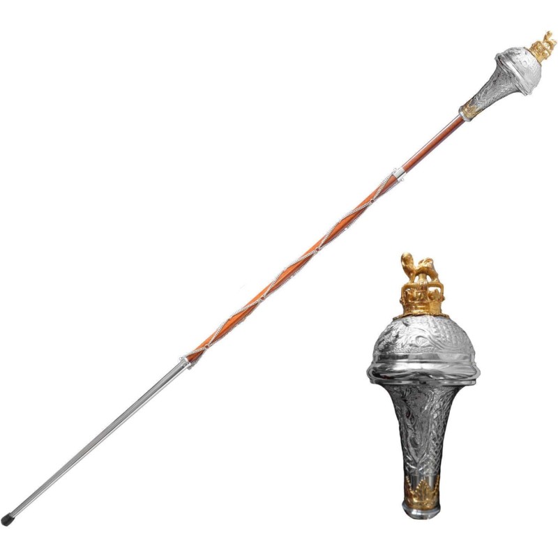 Tags: Drum Major Mace with Stick Bag Lion & Crown - Pakistan Head Brass head with gold plated Lion Marching Band leader Mace Baton major stick major mace kandy musical hub