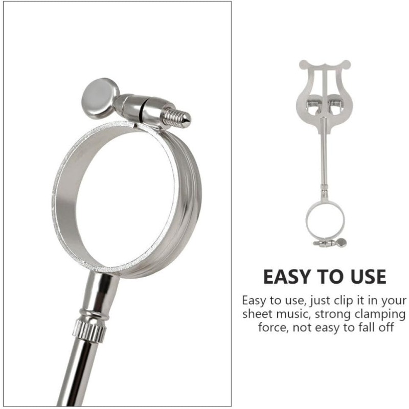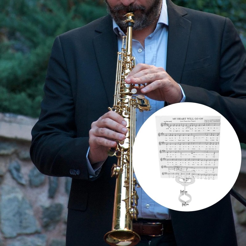 Package List 1 x Clarinet Music Note Clip Features -Color: Silver kickstand -Size: About 15.50X4.60X2.00cm/6.09X1.81X0 Saxophone Sheet Music Clip. -Material: Iron Instrument Accessories -Made of premium and wear-resistant material with exquisite workmanship Woodwind Instrument Music Clip. -Provide more comfortable grip and durability for most user, let your play your musical instrument more conveniently music page holder. -The sheet music folder is an excellent assistant for instrument players, musicians, students, office workers, etc metal stand. -The excellent performance of our product will bring you a good experience Clarinet Sheet. -It's not easy to come off, not easy to damage and deform. music sheets organization Music Book Clamp. Goods Information Score Reading Clip It is convenient to practice, and you can directly watch the score while playing.Clarinet Marching Band Holder It can give independent space for your music sheets, making it concert.Clarinet Music Paper Clip This item is a clarinet music score clip, lightweight and