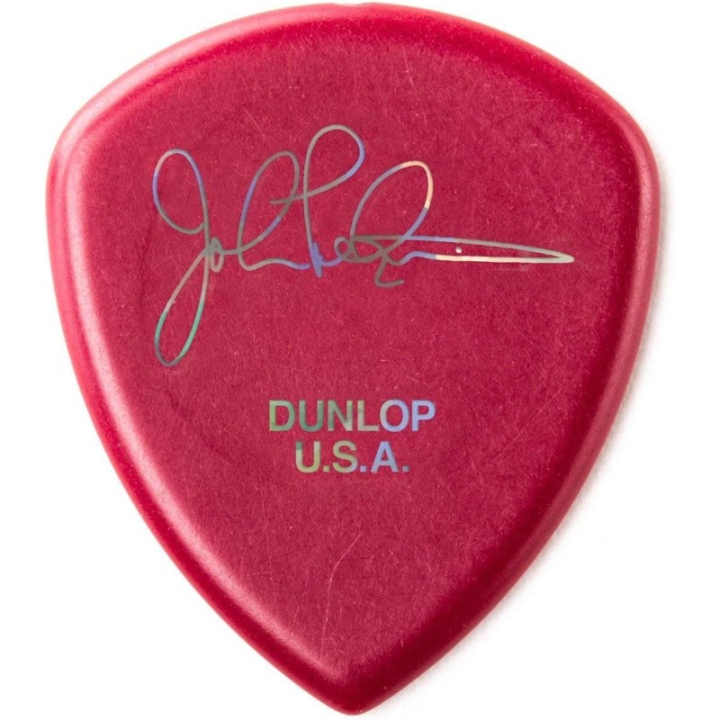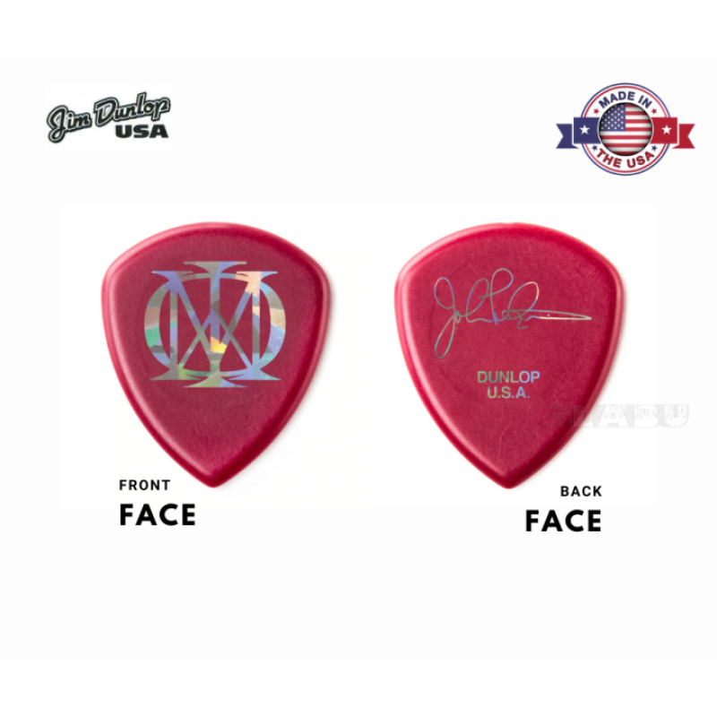 DUNLOP JOHN PETRUCCI FLOW PICKS Line: Flow Material: Ultex Gauge: 2. 00 mm Colour: Oxblood - Printed with Dream Theater "Majesty" logo and autograph by John Petrucci Set: 3 pieces Developed in collaboration with legendary shredmaster John Petrucci (Dream Theater), this pick is designed to complement his huge sound and the intricate passages he's famous for playing. It projects volume and depth thanks to Ultex , and its uniform bevel allows John to move from string to string with ease. DUNLOP – PERFORMANCE IS EVERYTHING.
